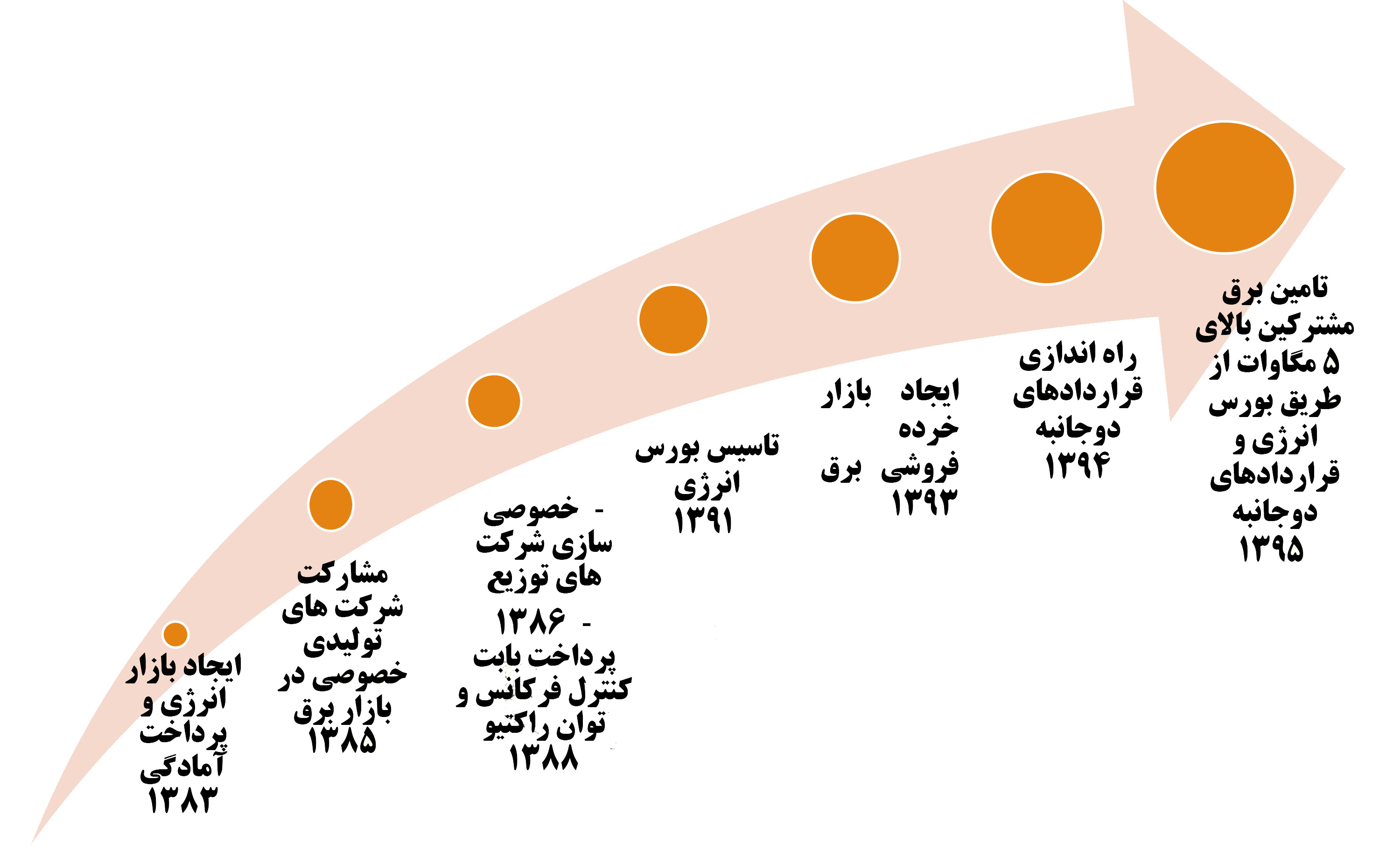 شرکت مدیریت شبکه برق ایران در پاییز 1383 کار خود را آغاز کرد و این نقطه عطفی در اصلاحات صنعت برق و شبکه ملی به شمار میرود. این شرکت هر دو وظیفه بهره برداری از سیستم قدرت و بهره برداری از بازار برق را عهده دار می باشد. مدیریت بازار برق ایران بر عهده معاونت بازار برق این شرکت می باشد. در شکل زیر خلاصه ای از مهمترین اقدامات و تحولات بازار برق ایران از سال 1383 به بعد مشاهده می گردد :